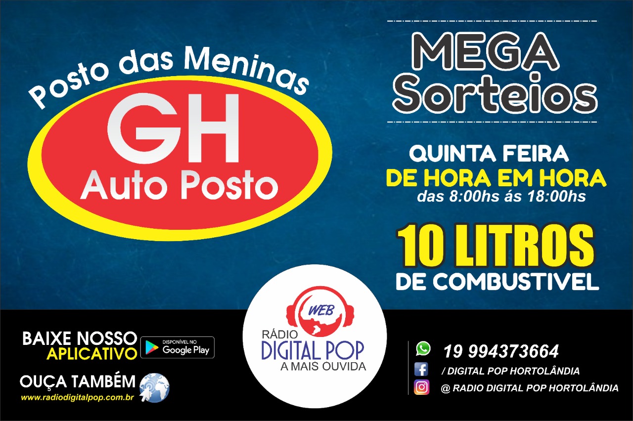 A RÁDIO DIGITAL POP E O POSTO DA MENINAS, VAI SORTEAR DE HORA EM HORA 10 LITROS DE COMBUSTÍVEL!! MEGA SORTEIO, TODAS AS QUINTAS-FEIRAS!!! E PARA CONCORRER SIGA O REGULAMENTO ABAIXO ????