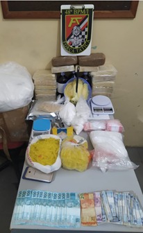 Os policiais também encontraram R$ 1.540,00 em dinheiro e duas balanças digitais.