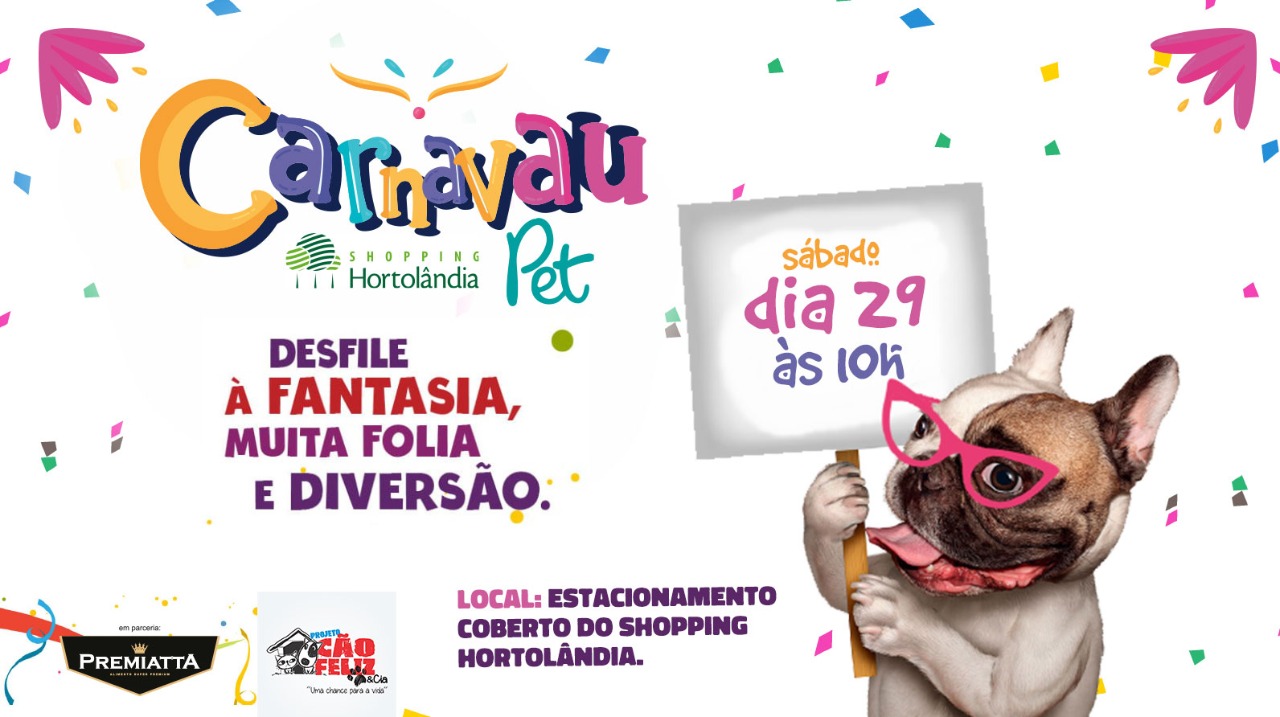 A partir de março/2020, os pets de pequeno e médio porte poderão acompanhar seus donos no Shopping Hortolândia. E como lançamento desta iniciativa Pet Friendly será realizado o 1º CarnavAU PET do shopping no sábado (29).