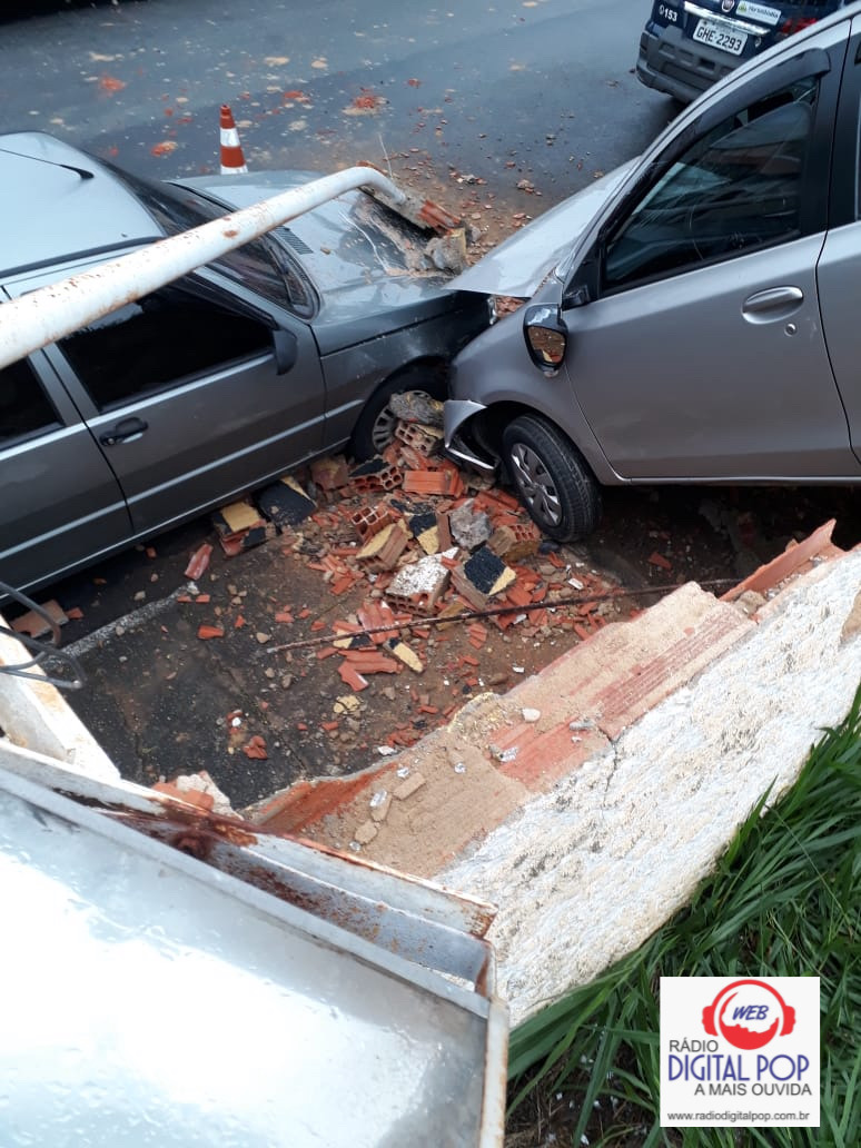 Ao se distrair, a motorista acelerou seu veículo e colidiu com o muro do estacionamento. Após a colisão, o carro se chocou com outro automóvel que estava estacionado na rua ao lado.