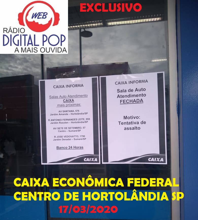 Hoje(17/03), a Caixa Econômica Federal do centro de Hortolândia está fechada por motivo de assalto.