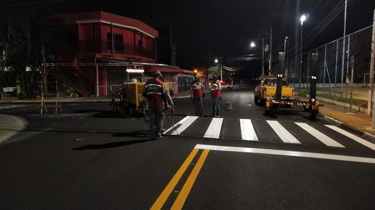 Antes de serem pintadas, todas as vias haviam sido recapeadas pela Prefeitura. Lá, as equipes implantam faixas de pedestres, de retenção, dupla amarela, seccionada amarela e linha amarela onde é proibido estacionar. Também demarcam ponto de parada de transporte público com legenda "ônibus", pintam lombadas e legendas de "Pare".