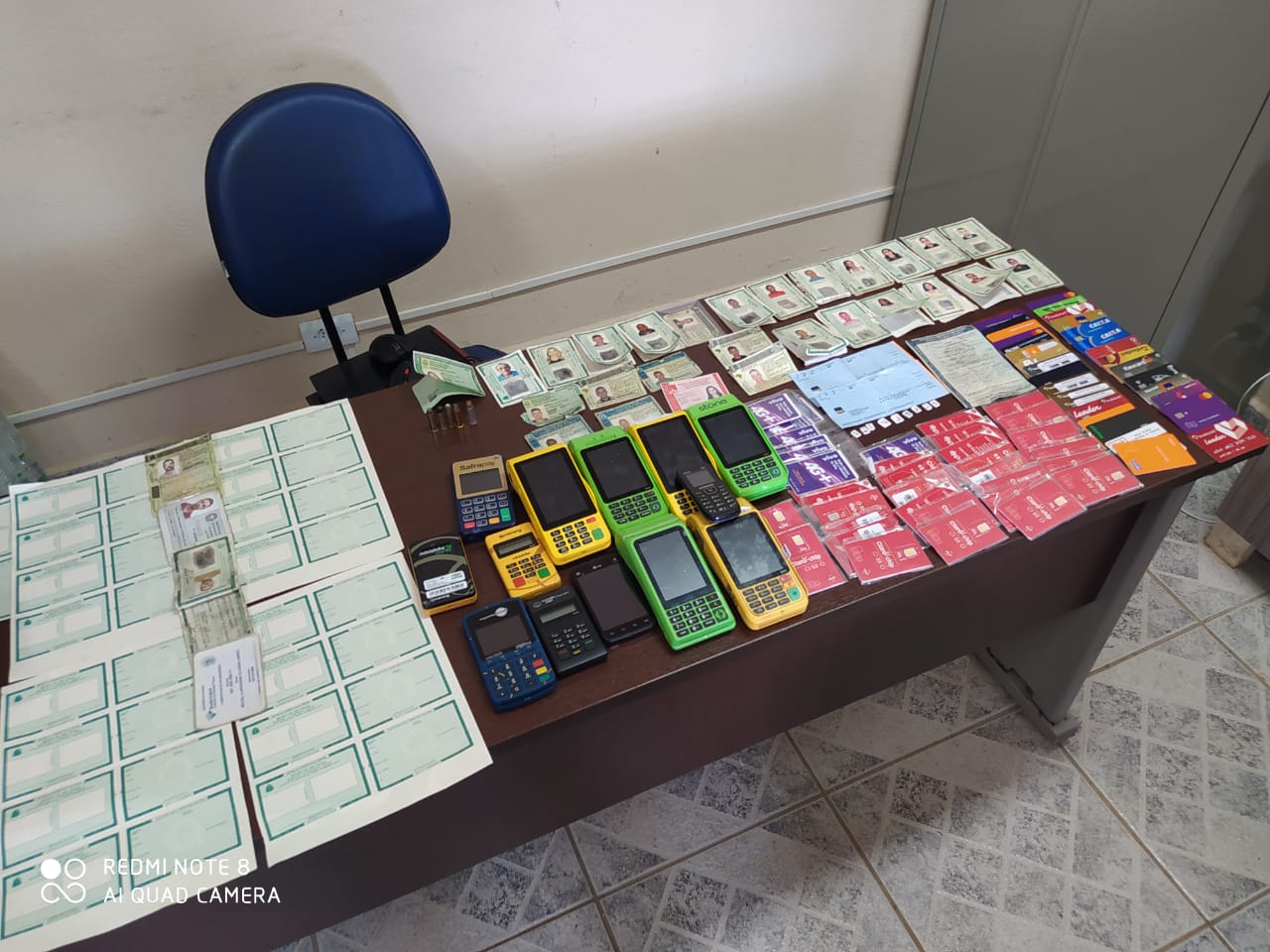 A equipe policial, juntamente com o homem, foram até a residência do mesmo em Monte Mor e localizaram mais máquinas de cartões de crédito, além de chips de telefones celulares, diversas carteiras de identidade, cartões bancários, espelhos em branco de carteiras de identidade em nome de terceiros.