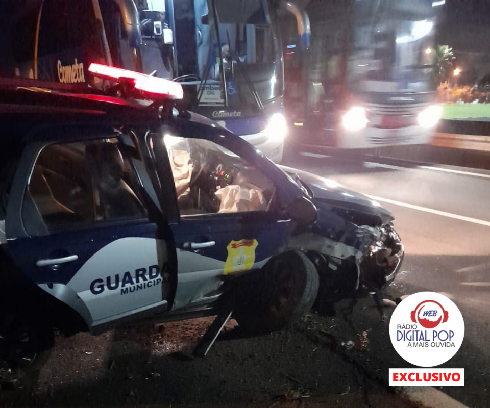 Uma viatura da Guarda Municipal da cidade de Hortolândia com a mureta de proteção (guard rail) na Rodovia SP-101, próximo ao acesso conhecido como "trevo", próximo a empresa EMS, na noite desta terça-feira (30).