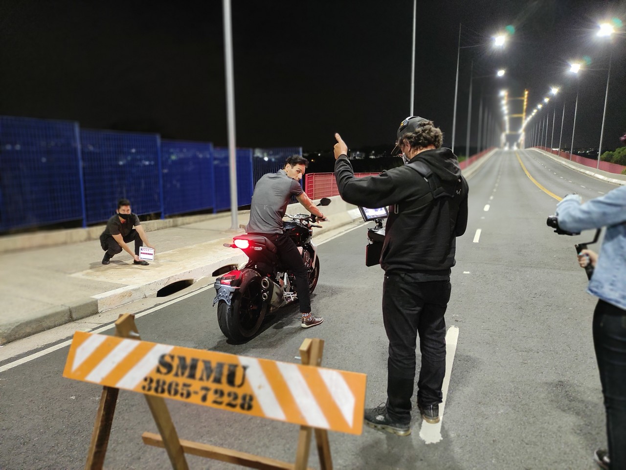 De acordo com o cineasta, foram filmadas cenas de perseguição com dublês, que utilizaram três motos. André Luís Camargo ficou "encantado" com a ponte quando passou por ela de carro. Ele explicou que a ponte foi escolhida por ser toda iluminada, por sua beleza e extensão. O diretor destacou ainda que "Tração" é o primeiro filme de ação brasileiro com motos. Antes de se tornar cineasta, André Luís Camargo foi piloto de motocross, tendo disputado competições no Brasil e internacionais.