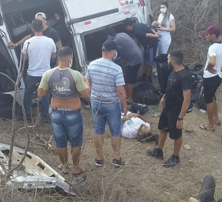 Veículo que transportava a banda do cantor Gusttavo Lima capota em Sã...